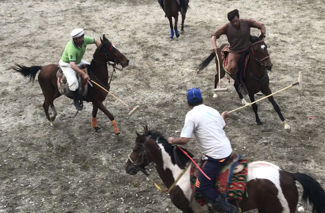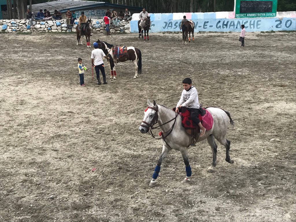 We walked a block to a lively polo match we had seen driving in, which turned out to be a practice session the local team was having. Polo is popular in Baltistan, and indigenous to the Karakoram region, having been played there since the 15th–16th century. As expected, our presence as western foreigners caused some attention and curiosity, but we were quickly invited to sit in the stands to watch the match. In fact, the players allowed our enthusiastic guide to throw the ball into the field as a starter! It was beyond exciting watching the players ride with vigor right in front of us, hitting the ball up and down the field with aggressive mallet swings.