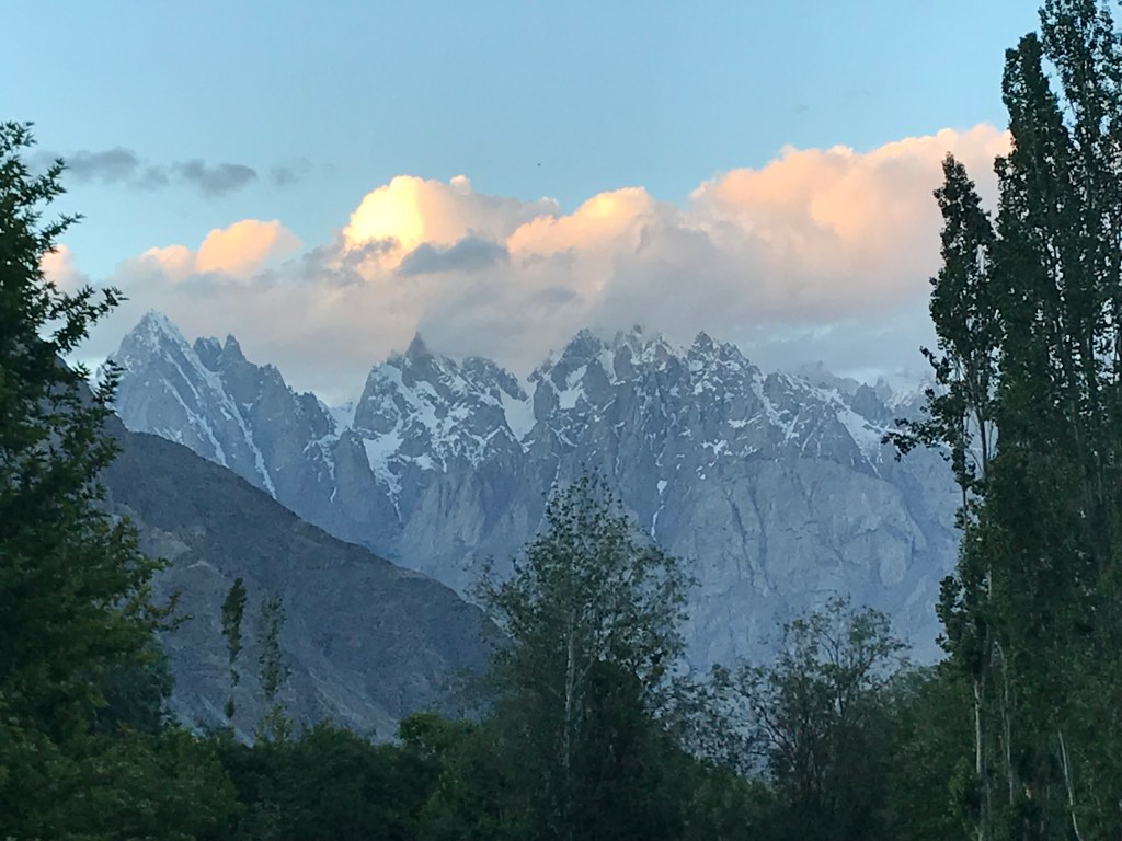 That afternoon, we drove to the viewpoint for Masherbrum (25,659 ft), the 22nd highest mountain in the world and the 9th highest in Pakistan. The drive took us by Machulu village, showcasing vibrantly green terraced crops, and stone fenced homes. We capped off the great day with a bonfire in the hotel courtyard, after our standard cocktail hour with “brown tea” (whiskey), “white tea” (vodka), and “red tea” (wine).